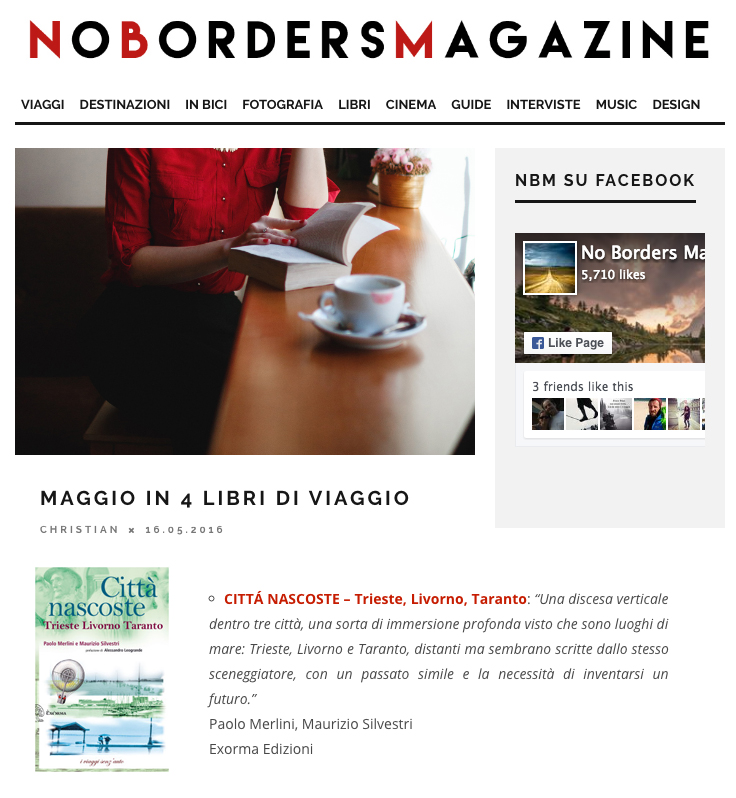 “Città nascoste” tra i libri di viaggio consigliati da No Border Magazine a maggio